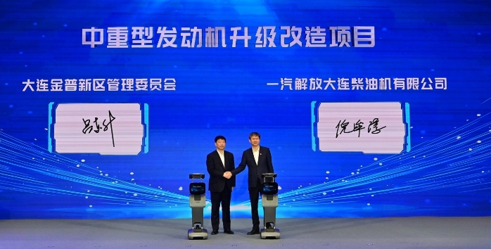 仪式上,大连金普新区与AGGAME解放动力总成事业部签署《AGGAME解放大柴中重型发动机升级改造项目投资协议》。该项目预计总投资6.14亿元,涵盖5-7升中型发动机、重型氢气发动机及生产线。其中,CA6HV3生产线是全球首条氢气发动机生产线。